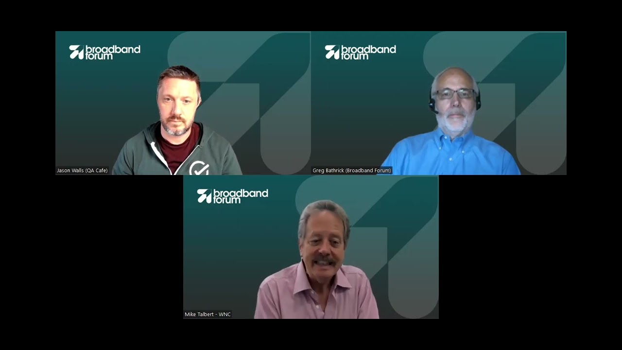 BBF’s Board Director Greg Bathrick (Calix) discusses with Jason Walls, the BBF’s Broadband User Services Work Area Director and QA Cafe’s Director of Technical Marketing and Mike Talbert, Senior Director of Technology at WNC and the project lead for the BBF’s work on the app-enabled services gateway.